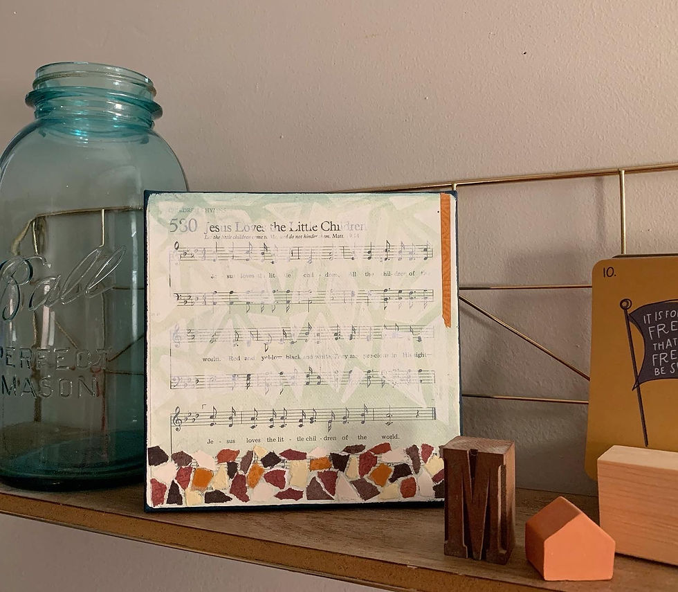 Jesus Loves the Little Children - Original 6x6 Mixed Media Hymn
